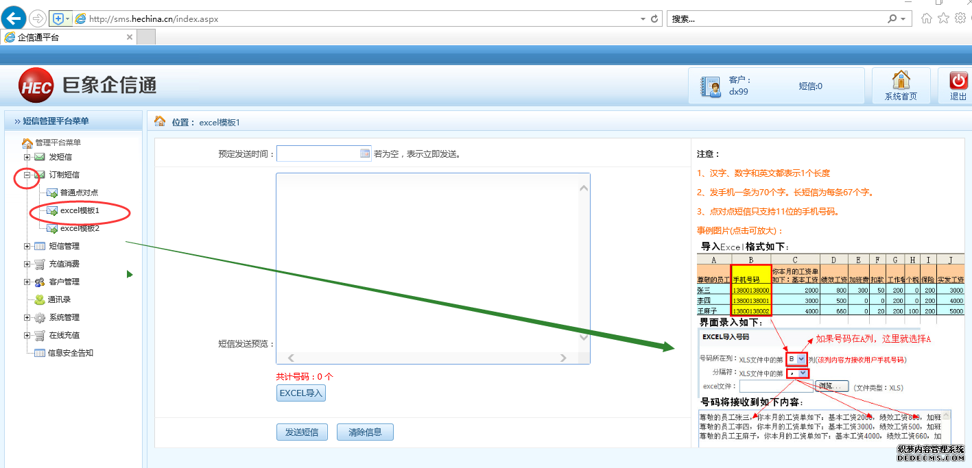 三、常規批量短信群發操作,即發送對象收到的內容都一樣,如會議通知、公告通知等,操作方法如下。